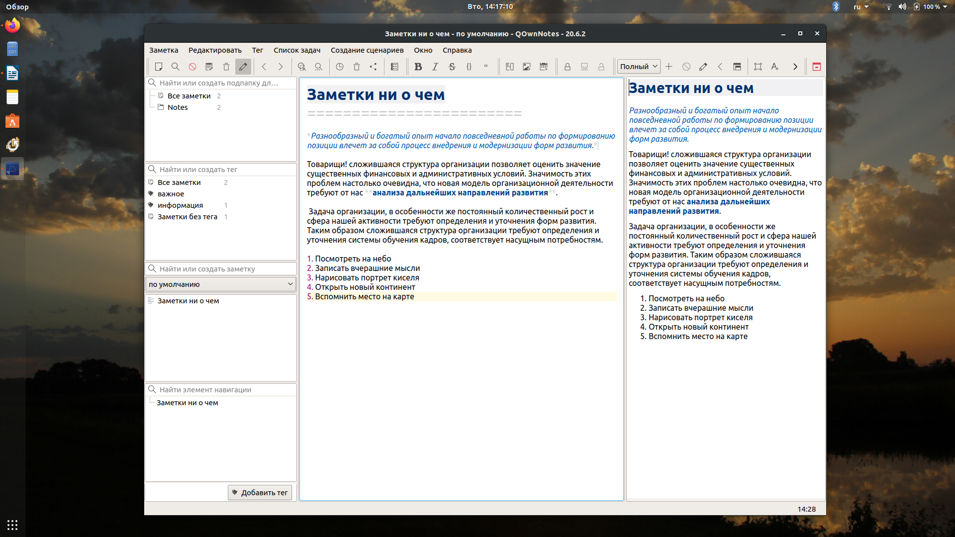 QownNotes — ещё одна программа для управления заметками, которая может похвастаться большим набором функций и удобством. Рекомендую её людям, регулярно работающим с большими объёмами информации.