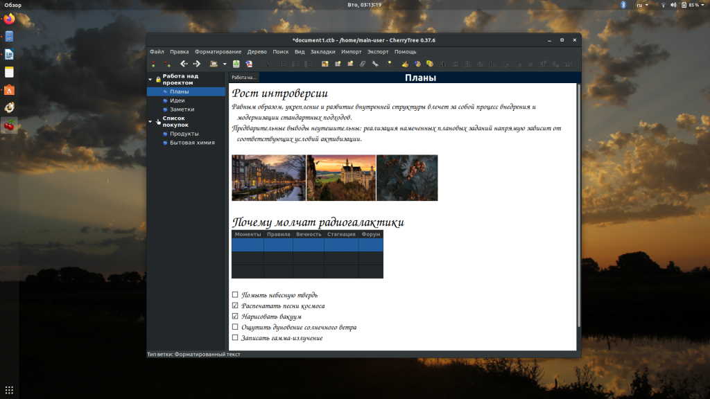 CherryTree — программа с иерархичной структурой. Позволяет создавать отдельные блокноты (ветки) и добавлять в них любое количество заметок. Это приложение станет незаменимым помощником, если вам приходится работать с огромным количеством «разношёрстной» информации.