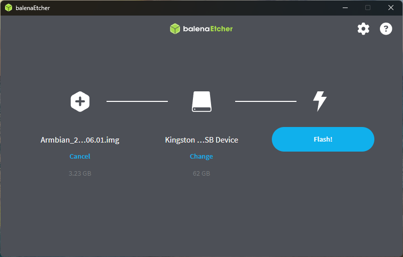 Запускаем BalenaEther, выбираем образ, выбираем флешку и записываем.