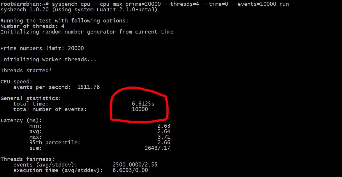 sysbench cpu --cpu-max-prime=20000 --threads=4 --time=0 --events=10000 run