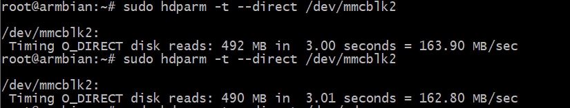 hdparm -t --direct /dev/mmcblk2