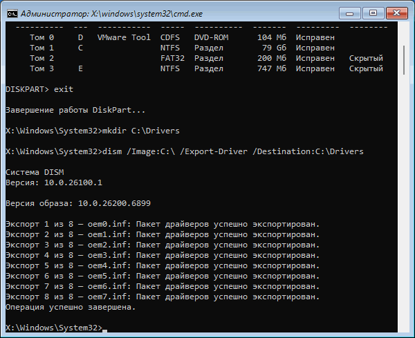 Резервная копия драйверов с помощью DISM