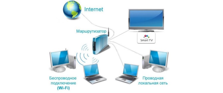 Обычный домашний Wi-Fi роутер объединяет подключенные к нему устройства в доме или офисе (компьютеры, ноутбуки, телефон, планшет, принтер, телевизор Smart TV и другие) в локальную сеть и, зачем его собственно, большинство людей и покупают, позволяет пользоваться Интернет со всех устройств одновременно, без проводов (по Wi-Fi) или с ними, при наличии всего одной линии провайдера в квартире. Примерную схему работы вы можете увидеть на картинке.