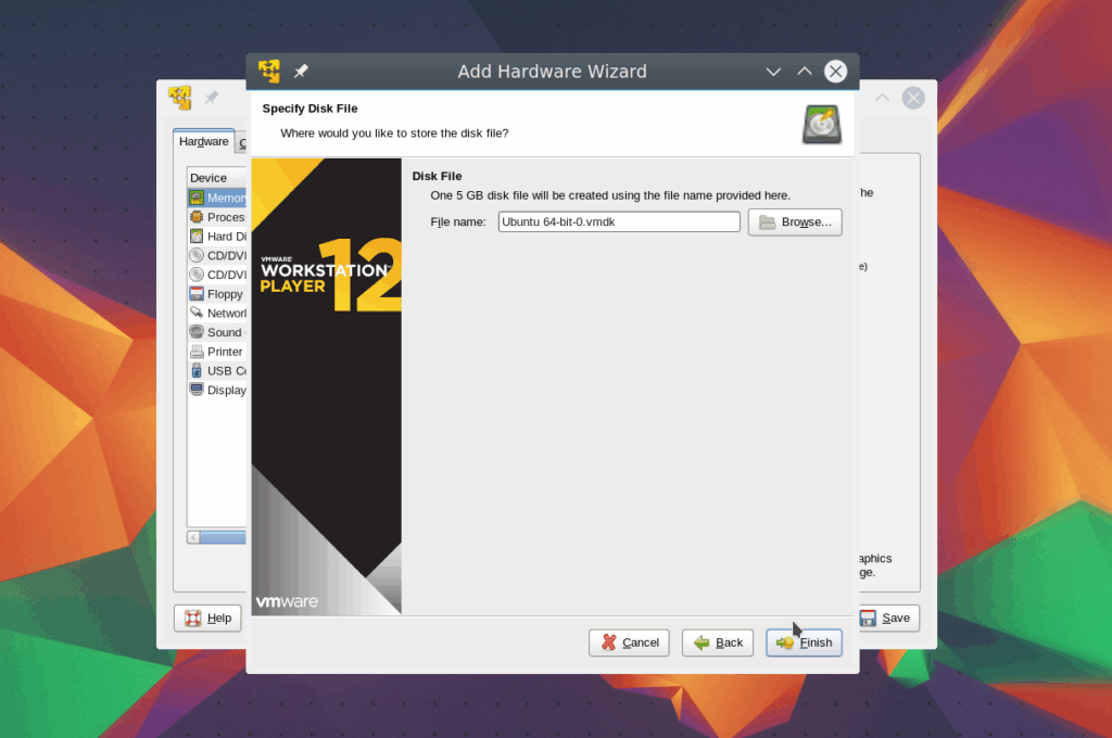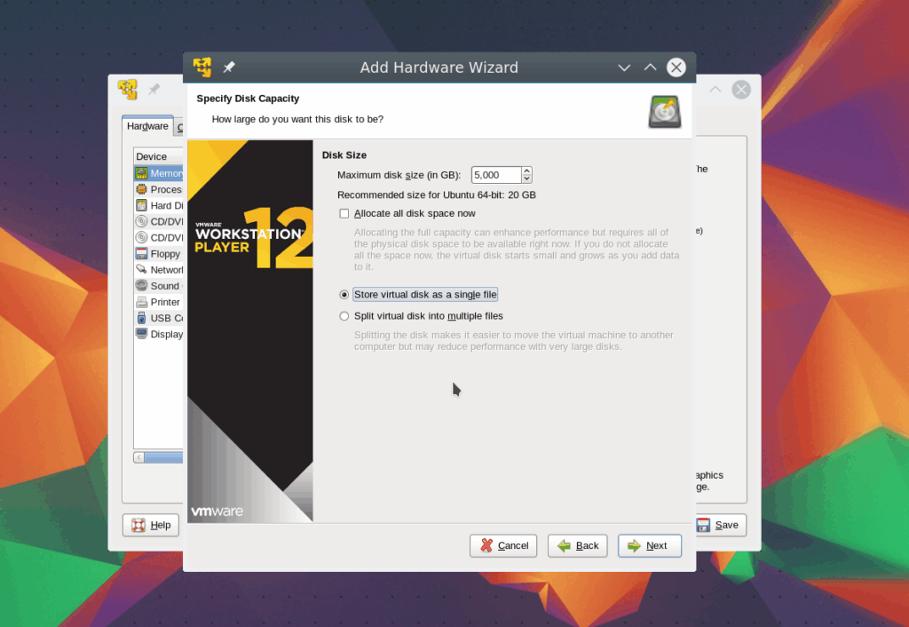 Что интересно, вы можете добавлять диски и другие компоненты на лету, прямо во когда виртуальная машина VMware работает. Временами такое использование VMWare может быть очень удобным.