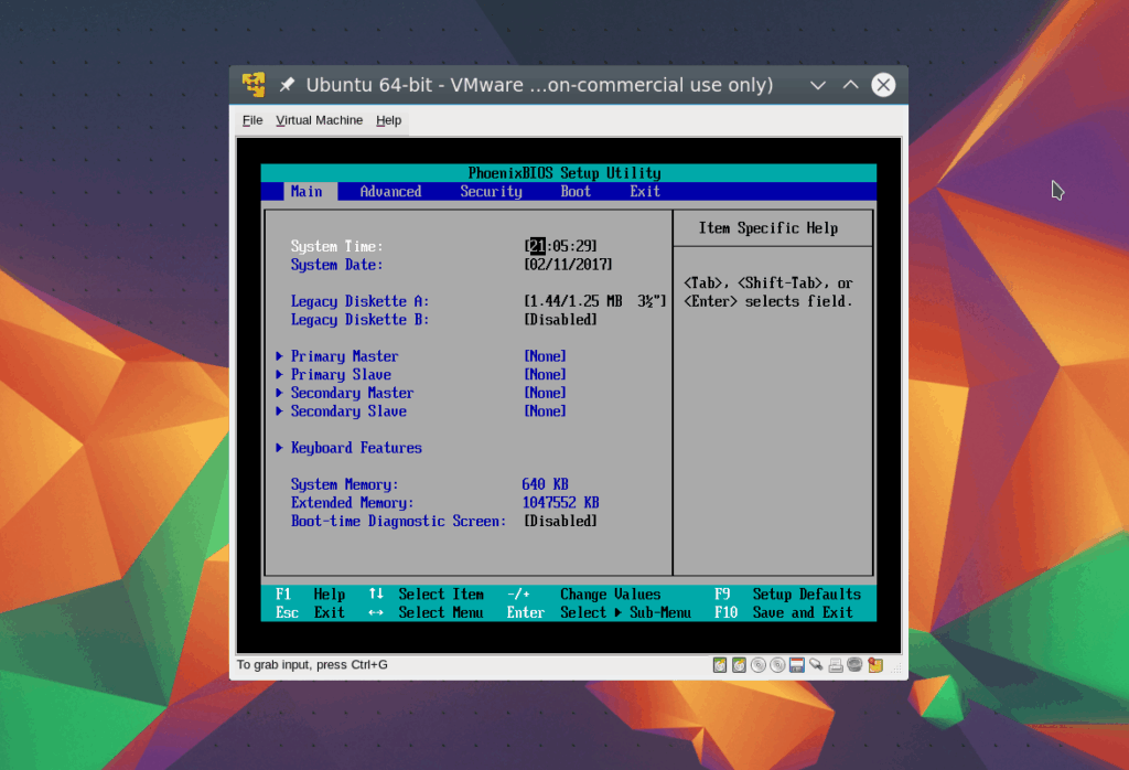 Затем сразу же начнется загрузка. Если во время заставки WMVare вы успеете нажать захватить фокус ввода, несмотря на множество мешающих всплывающих окон и нажать F2, то попадете в меню BIOS, где можно настроить приоритет загрузки: