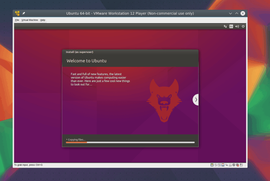 Сразу же после нажатия кнопки "Finish" запустится новая виртуальная машина vmware и начнется установка выбранной системы. Возможно, вам даже не придется ничего настраивать во время установки, VMWare сделает все сама.