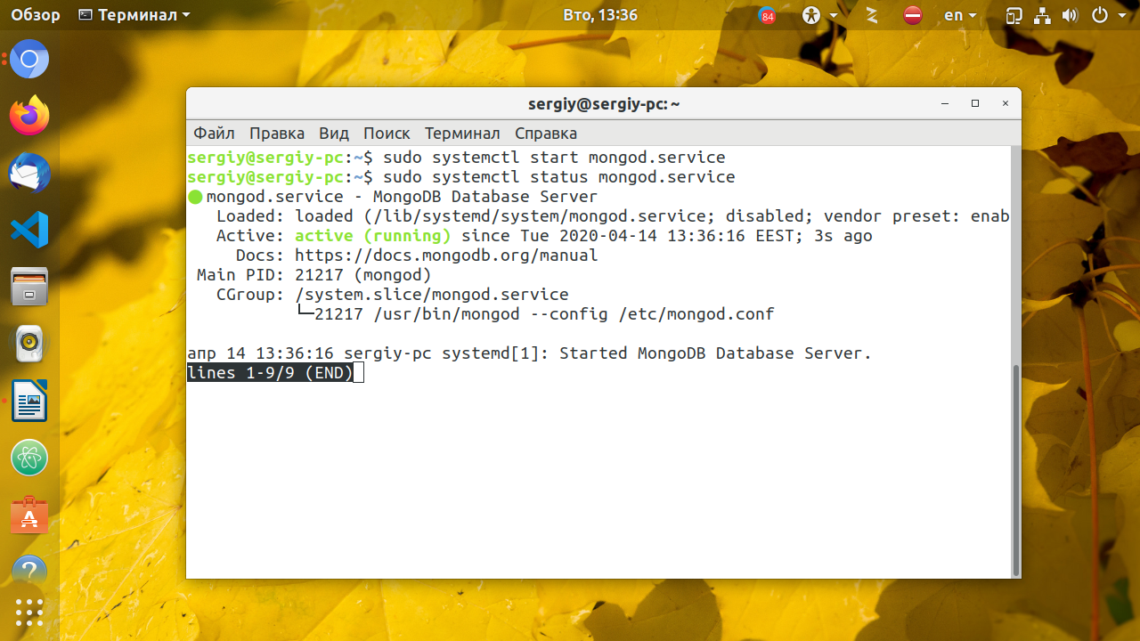 Далее надо запустить сервис mongod и добавить его в автозагрузку:
