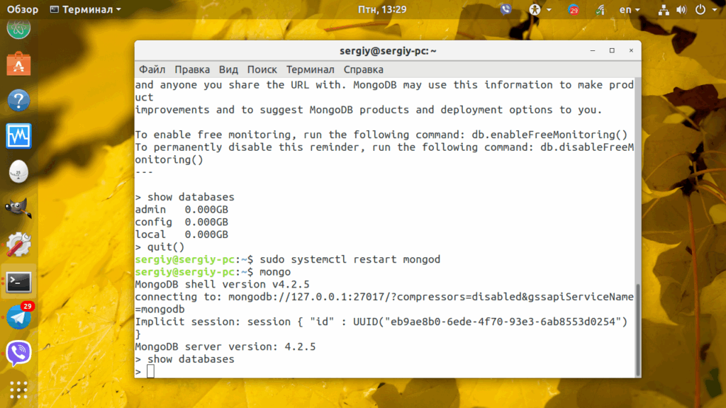 Теперь вы знаете, как установить MongoDB Ubuntu 18.04 на ваш компьютер, а также как проверить, какая версия у вас установлена, и работает ли вообще эта база данных.