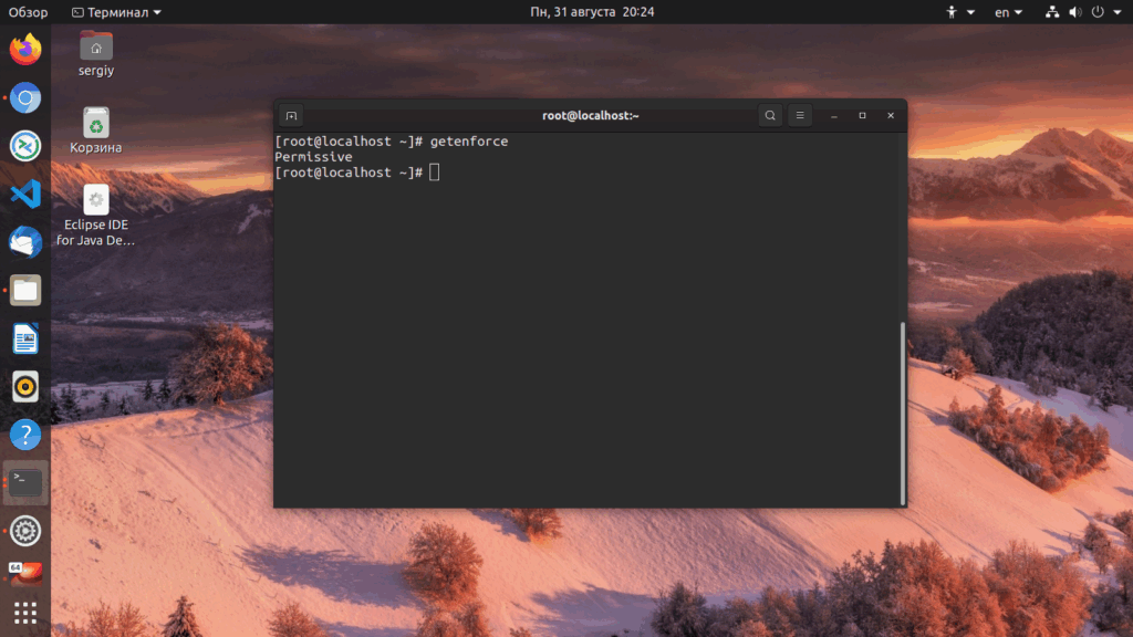 После перезагрузки вы можете посмотреть посмотреть состояние SELinux: