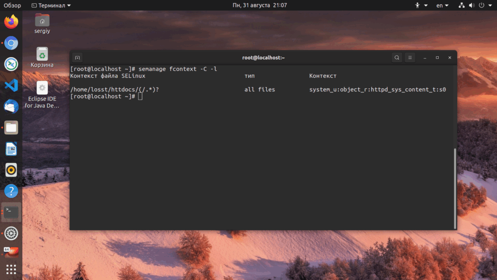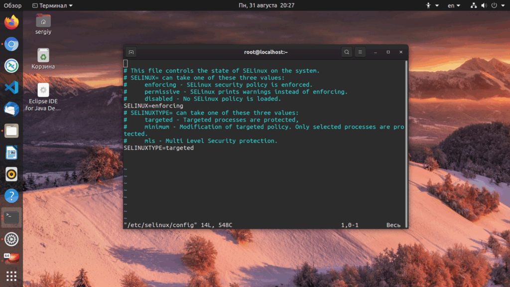 В этой статье будет рассмотрена настройка SELinux, мы не будем трогать создание новых политик, а постараемся подойти к системе с другой стороны, посмотреть чем она может быть полезна обычному пользователю Linux, рассмотрим основы её работы, включение, отключение и изменение состояний. В качестве системы для выполнения примеров использовалась CentOS 8.