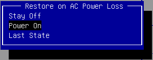 - On (или Power On): Это самый распространенный вариант, который означает автоматическое включение компьютера сразу после восстановления электропитания. Это удобно для серверов, майнинговых ферм, систем видеонаблюдения или других устройств, которые должны работать 24/7 и самостоятельно возобновлять работу после сбоев в электросети.