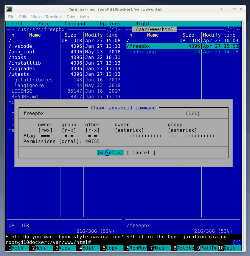 Создайте директорию для установки веб-интерфейса FreePBX, задайте ее права: