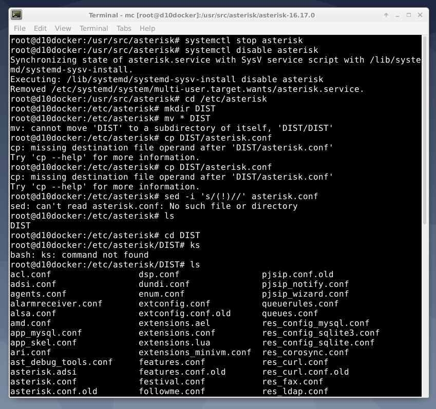Остановите Asterisk и измените содержимое директории с его конфигурационными файлами /etc/asterisk/