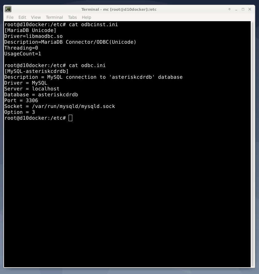 Внесите изменения в файлы /etc/odbc.ini и /etc/odbcinst.ini для подключения Asterisk и FreePBX к MariaDB через коннектор ODBC так, как приведено ниже: