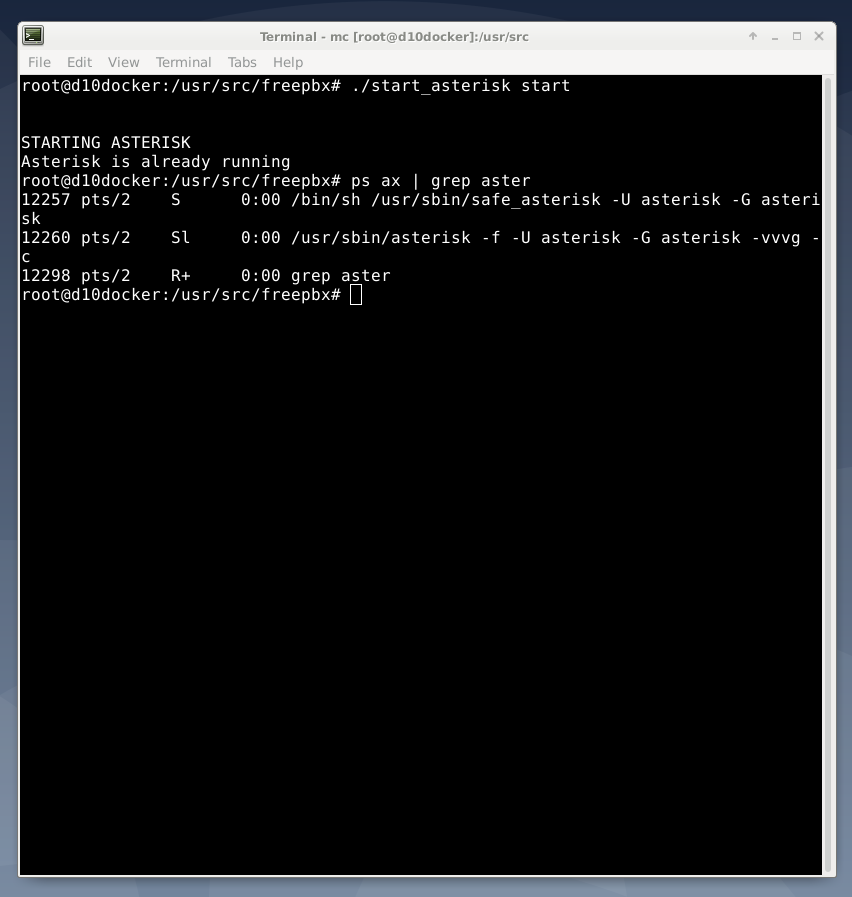 Проверьте, удалось ли запустить Asterisk из дистрибутива FreePBX: