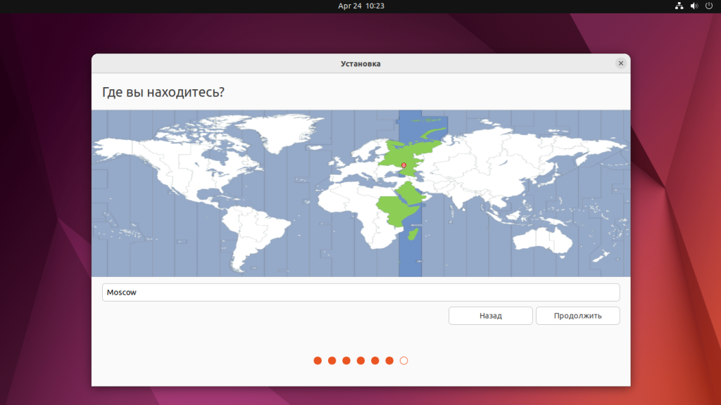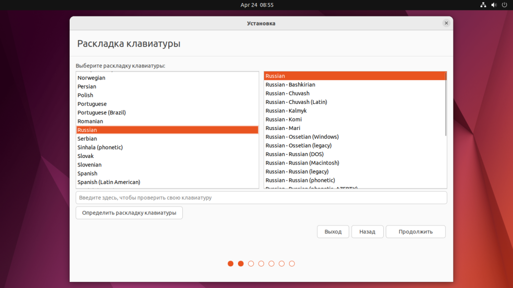 В следующем окне мастера нужно выбрать раскладку клавиатуры. Если вы выбрали русский язык, то по умолчанию вам будет предложена русская раскладка: