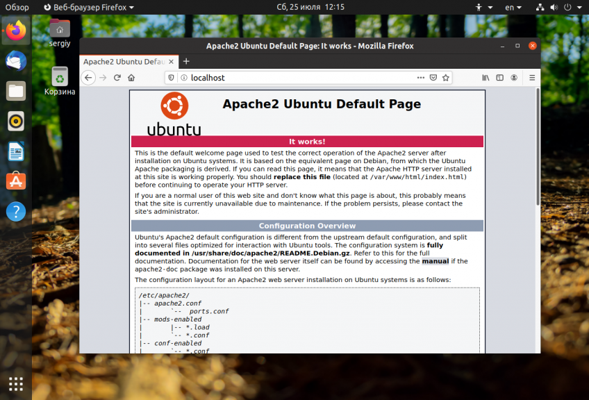 Чтобы проверить работает ли веб-сервер, введите IP адрес вашего сервера в браузере. Если вы устанавливаете веб-сервер на локальной машине, используйте адрес http://127.0.0.1 или localhost: