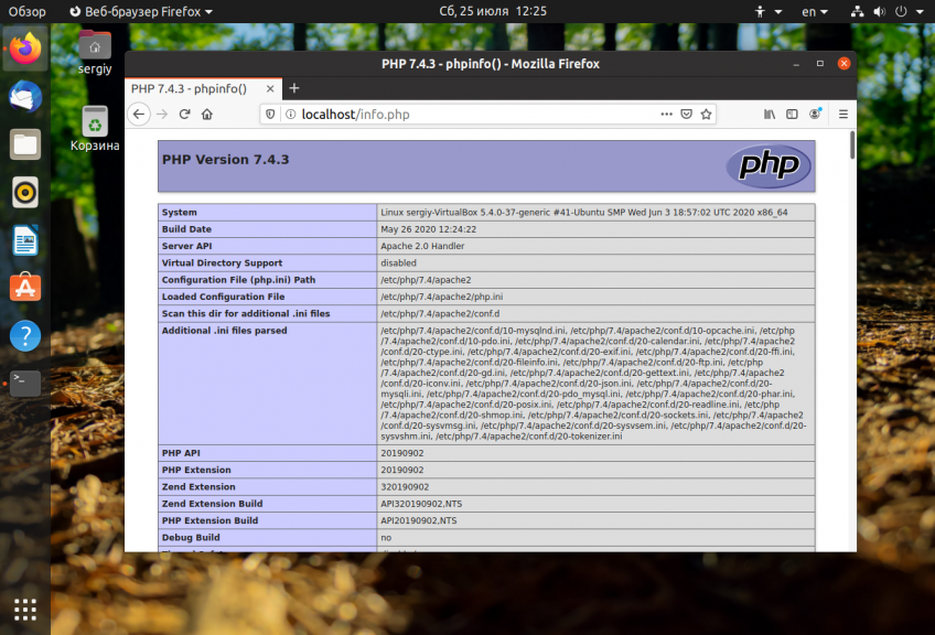 Затем откройте в веб-браузере адрес http://ip-адрес/info.php. Если все правильно настроено, то вы увидите страницу с информацией о версии PHP: