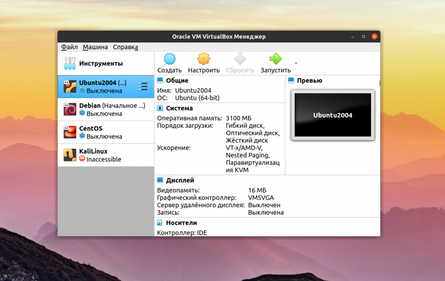 VirtualBox - это универсальное программное обеспечение для виртуализации в Linux, которое поддерживает и другие операционные системы, в том числе Windows и MacOS. Вы можете установить сюда практически любую систему, кроме, конечно, систем, предназначенных для устройств на чипе ARM. Все установленные виртуальные машины хранятся в файлах, которые содержат образы дисков. Это позволяет очень просто выполнить их резервное копирование или перенос на другой компьютер просто скопировав файл машины.