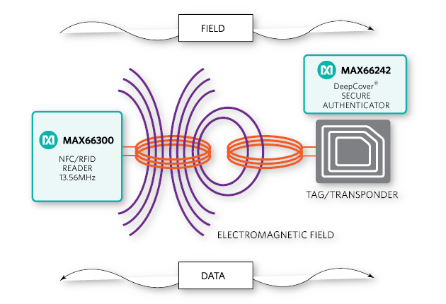 Для запису статичної інформації використовується NFC-мітка (tag). Вона не потребує живлення і може бути «вшита» в пластикові або паперові картки. NFC Tag — це невелика наклейка з тонкого шару алюмінію, на якій записана інформація. Коли смартфон з передавачем генерує електромагнітне поле, мітка активується і починає передавати записану інформацію. Як правило, мітка використовується на картах, що застосовуються для оплати.